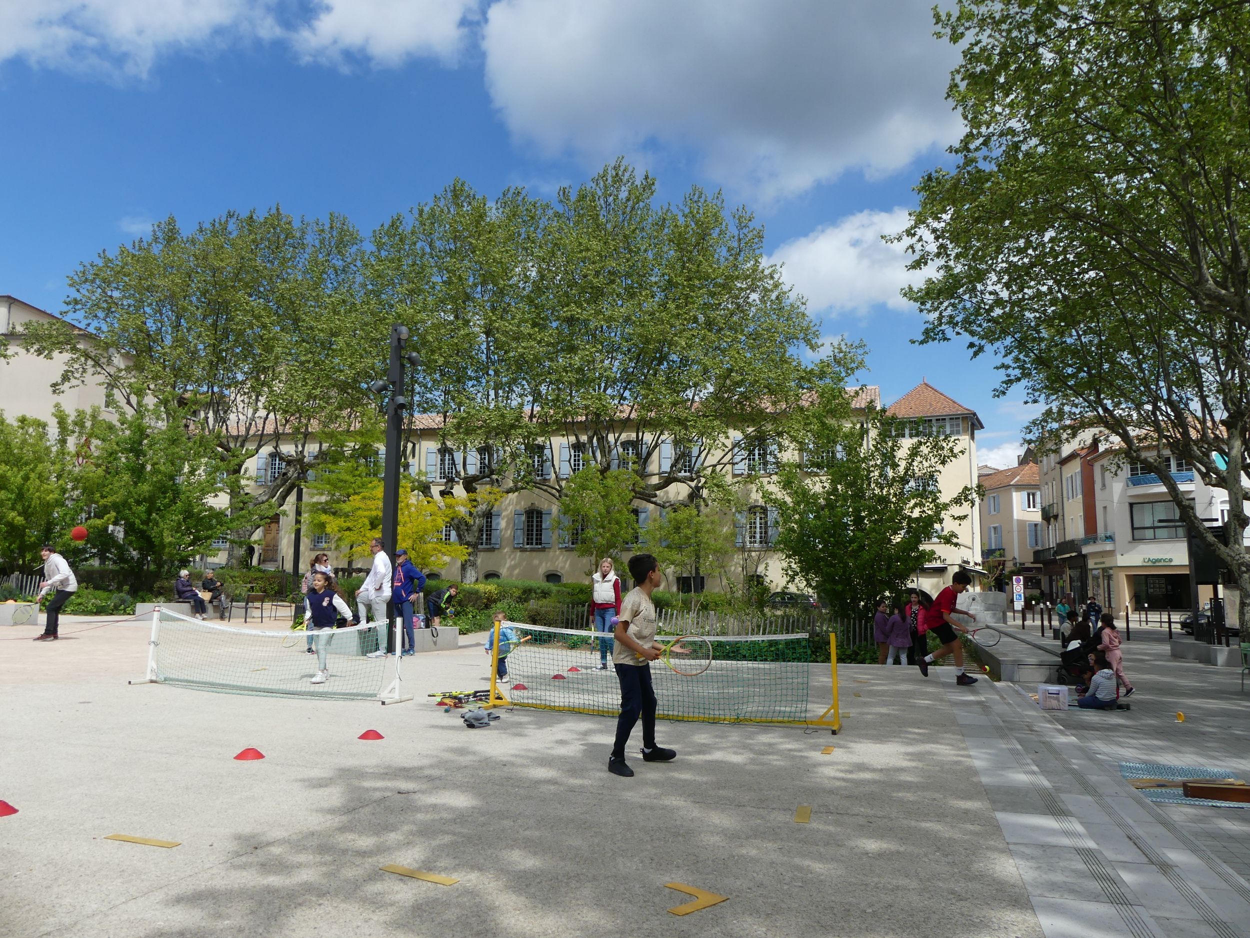 Rendez-vous à l'Agora du Champ de Mars, le cœur battant du centre-ville d'Aubenas, où la vie urbaine prend toute sa dimension à travers des activités et événements variés. Nous espérons faire de l'espace public le reflet de notre dynamisme collectif et de notre envie de créer des moments de convivialité et de partage.